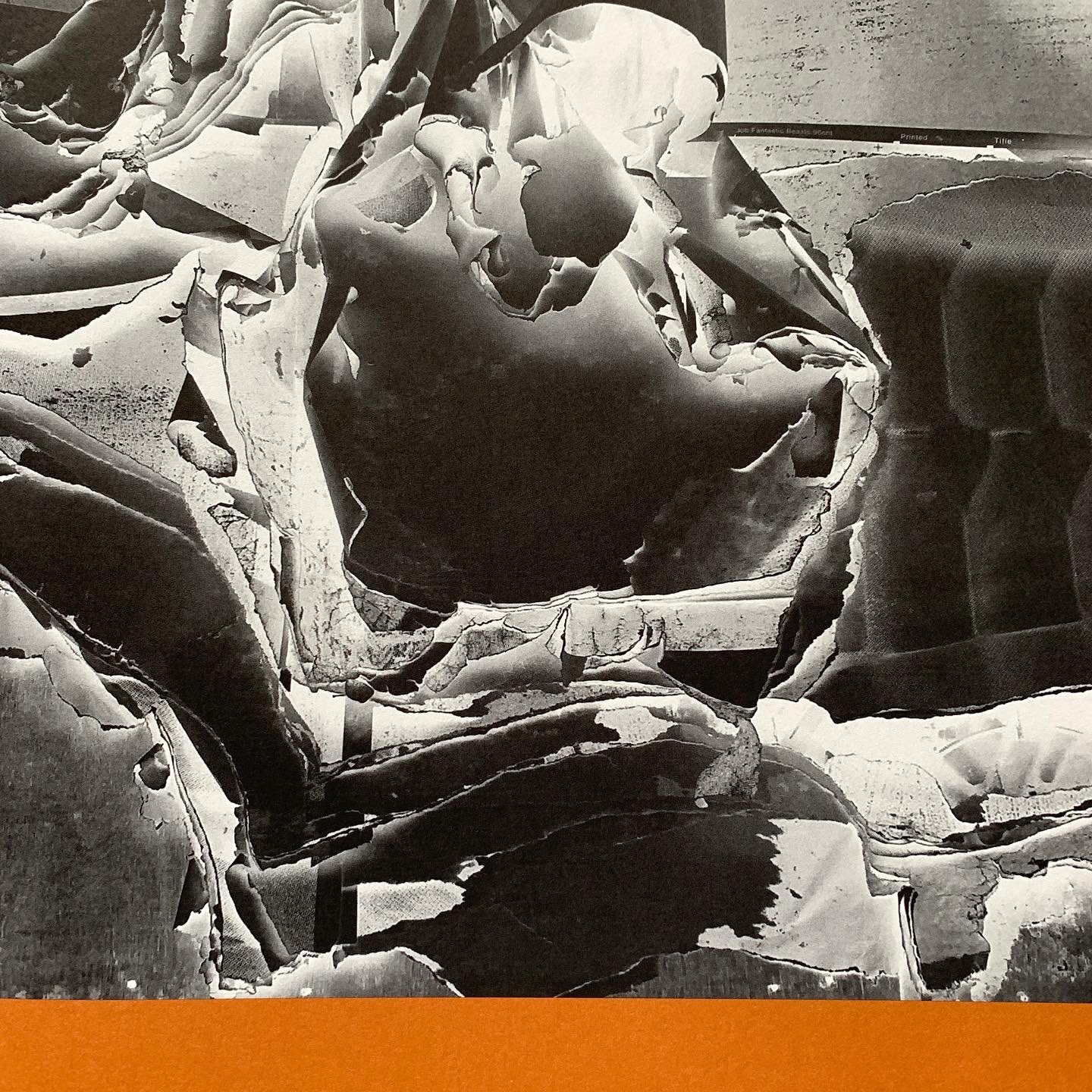 ‘Silver’ poster. 18 off. Each unique. Printed 2 colour litho, Black and Metallic Orange. Orange flood print. 3 Colour screen print – White, Silver and high gloss Black. Each poster is printed on a flat, uncut running sheet from the Chris Bigg ‘Analogue Process’ book. 605mm x 895mm. Signed by Chris Bigg