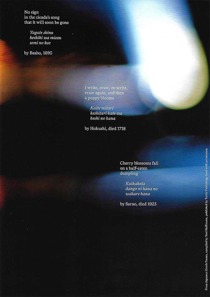 Verses from Japanese Death Poems: compiled by Yoel Hoffmann, published by Tuttle Publishing. Used with permission by tuttlepublishing.com